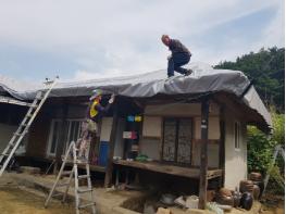 마침 관내 독거노인 가구 중 한 곳이 노후지붕으로 인해 누수가 심하고 지붕에 있는 황토 덩어리가 떨어지는 등 안전에 심각한 문제를 초래하고 있어 거창읍 행복복지담당에서는 집수리 연계를 위한 자원을 찾던 중 좋은이웃들의 도움으로 서비스를 제공할 수 있게 되었다.