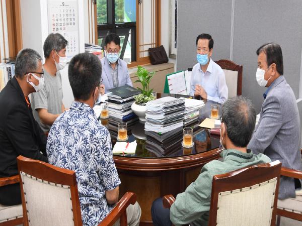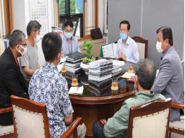 다음으로 소통군수실을 찾은 대평리 주민들은 최근의 마을회관 건립과 관련한 주민 갈등에 대해 설명하고, 마을이장은 “군에서는 현재 대평마을회 현안 및 사실관계를 바르게 이해하여 줄 것”을 건의했다.