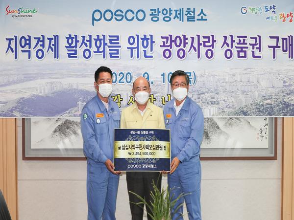 한편, 포스코광양제철소는 2018년에도 75억 원 규모의 광양사랑상품권 및 온누리상품권을 구매하는 등 실물경제에 큰 도움을 주고 지역경제 발전에 지속적으로 기여해 오고 있다.