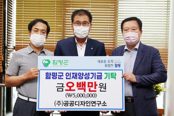 함평군(군수 이상익)은 지역 해보농공단지에 소재한 ㈜공공디자인연구소에서 가정 형편이 어려운 지역인재들을 위해 써달라며 군 인재양성기금에 5백만 원을 기탁했다고 10일 밝혔다.