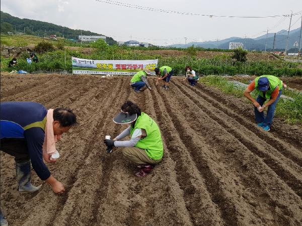 양산시 양주동 지역사회보장협의체(공공위원장 동장 이미란, 민간위원장 김영욱)는 10일 올해 연말 취약계층을 위한 김장 담그기에 사용할 무 수확을 위한 준비 단계로 약 600㎡ 넓이의 양주동 나눔텃밭을 갈고 무 종자를 파종했다.