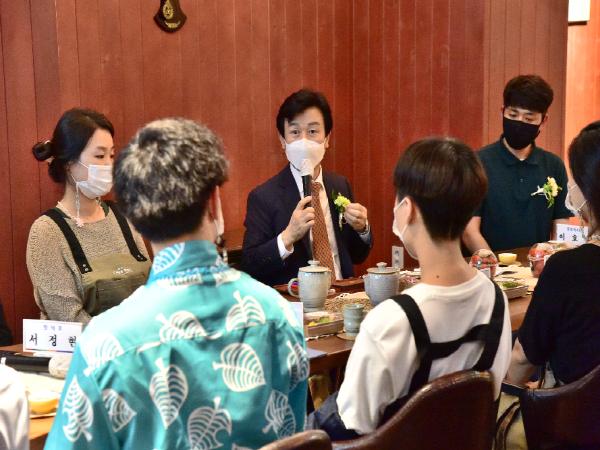 조규일 진주시장은 10일 오후 4시 진주중앙시장 내 비단길청년몰 복합문화공간(컬쳐살롱) 개장식 후 비단길청년몰 기존 청년상인과 복합문화공간에 신규 입점한 청년상인 및 작가들을 만나 9월「시민과의 데이트」시간을 가졌다.