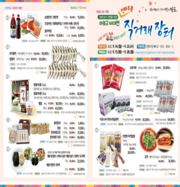 매년 마포구는 명절을 앞두고 우수한 품질의 국내산 농·특산물을 구민들이 쉽게 구매할 수 있도록 마포구청 광장에서 직거래장터를 진행했다. 그러나 올해는 신종 코로나바이러스 감염증(코로나19)의 영향으로 비대면 방식으로 직거래장터를 진행한다.