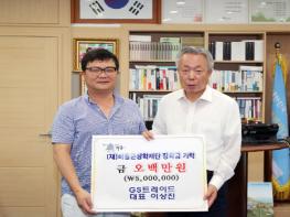 (재)하동군장학재단(이사장 이양호)은 이상진 대표가 군수 집무실을 찾아 하동 100년 미래의 인재육성에 써달라며 장학기금 500만원을 기탁했다고 11일 밝혔다.