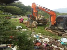 현장에는 5t 트럭과 포클레인이 동원돼 대대적인 쓰레기 수거활동을 실시해 쾌적하고 깨끗한 주거환경으로 탈바꿈했다.