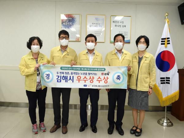 김해시가 2020년 공약 이행 매니페스토 경진대회에서 ‘초고령화 대응분야’에서 우수상을 수상하며 공약이행 평가에서 3회 연속 수상하는 저력을 보였다.