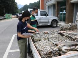군은 이날 관내 어업허가자로부터 장마철 전·후로 포획한 블루길, 배스 등 교란어종 6t 가량을 수매하였고, 포획 어가에는 kg당 3,200원을 지급할 계획이다.