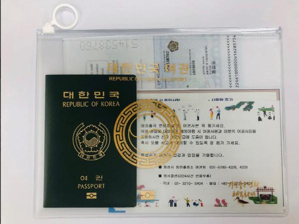 항균 파우치에는 여권과 함께 해외여행 시 여권분실사고에 대비한 여권 사본 2매, 여권 사용안내문이 담겼다.