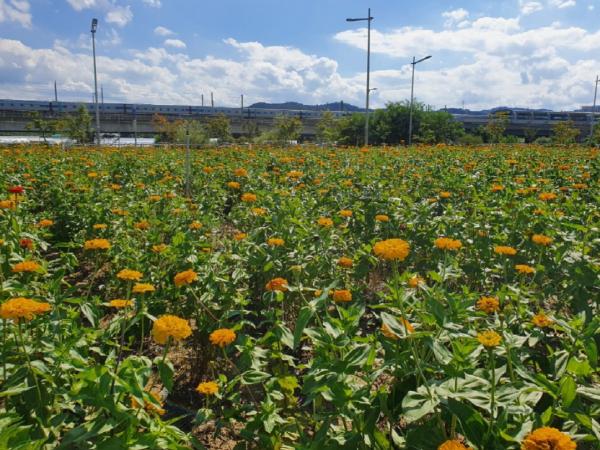 지난해 김천시는 한국토지주택공사와 협의하여 유휴대지를 무상임대하고 2ha가량의 대형꽃밭을 계절별로 조성하고 있다. 올 봄에 조성하여 시민들에게 많은 볼거리를 제공하였던 꽃양귀비가 지는 시점인 6월 초에 백일홍을 파종하였으며 8월에 개화를 시작하였다. 관계부서에서는 9호 태풍 마이삭과 10호 태풍 하이선으로 인한 피해가 복구되는 9월 중순부터는 백일홍을 관람할 수 있을 것으로 예상되어 대형꽃밭을 개방한다고 밝혔다.