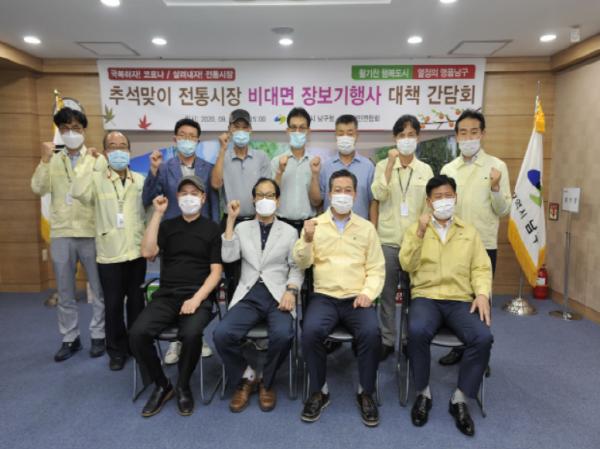 대구광역시 남구청(구청장 조재구)은 10일, 코로나19로 인한 거리두기가 연장됨에 따라 추석맞이 전통시장 장보기 행사를 비대면으로 추진하기 위해 남구상인연합회 회장들과 간담회를 개최했다.