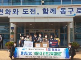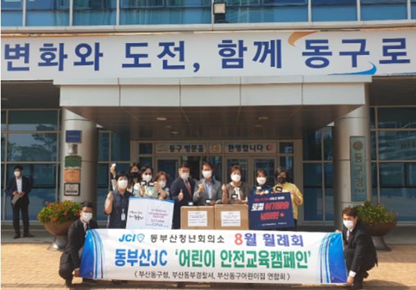 동부산 JC(회장 이성용)는 지난 10일 부산 동구(구청장 최형욱)에 어린이 교통안전캠페인 동영상을 전달하고 코로나19 예방을 위한 어린이용 마스크 3,000개를 기부하여 관내 어린이집 36개소 영유아들에게 전달되었다.