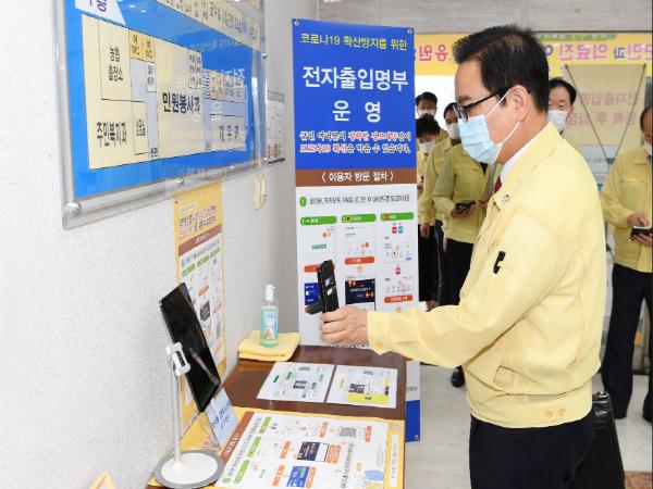 한정우 군수는 “행정공백의 최소화와 군민들이 보다 안심하고 청사에 방문할 수 있도록 전자출입명부를 도입하게 됐다”며, “QR코드 전자출입명부(KI-Pass)운영으로 군청 청사 출입 시 초기에는 다소 불편하더라도 코로나19 확산 방지를 위해 운영하는 만큼, 군민 여러분의 많은 이해와 협조를 부탁드린다”고 말했다.