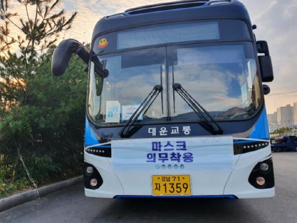 시는 재난관리기금을 사용하여 전체 시내·마을버스 760여대 중 주요 노선을 운행하는 버스 100대 전면부에 ‘마스크 의무 착용’ 문구를 넣은 마스크 모양의 디자인을 부착했다.