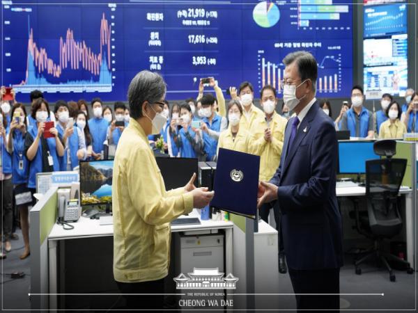 임명장 수여식이 끝난 뒤, 대통령은 정부세종청사에 있는 중앙사고수습본부를 찾아 코로나19 대응을 위한 범정부 컨트롤타워인 중수본의 현황을 보고받았다.