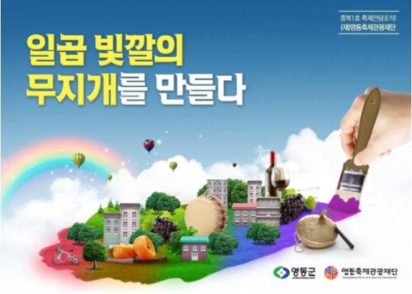 군은 ‘충북1호 축제전담조직! (재)영동축제관광재단 “일곱빛깔의 무지개를 만들다”라는 사례로 공모에 참여하였다.