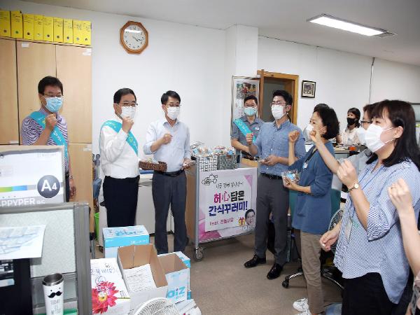 간식꾸러미를 받아든 한 직원은 “그동안 멀리서 보던 시장님이 가까이 다가와 직원들과 일일이 눈 맞추며 마음을 담은 간식을 나누어 주셔서 더욱 친근하게 느껴진다”며 감사 인사를 전했다.