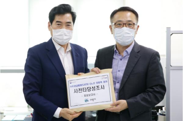 경기도 의왕시 김상돈 시장은 정부가 추진중인 수도권광역급행철도(GTX-C)건설사업 기본계획 발표 연장과 사업방식(BTO) 변경검토 등 급변하는 상황에 면밀히 대처하고 의왕역 정차 등 시민의 염원을 전달하기 위해 지난 14일 세종시에 위치한 국토교통부 철도국을 방문하고‘GTX-C 의왕역 정차 사전타당성 등 조사 용역’최종보고서를 전달했다고 밝혔다.