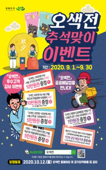 이벤트 당첨자 발표는 오는 10월 12일 오산시 지역화폐 ‘오색전’ 홈페이지(osan.go.kr/money)를 통해 발표된다.