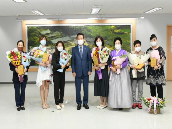 이날 표창 수여는 코로나19 재확산 및 사회적 거리두기 2단계 격상 등에 따라, 해마다 개최했던 양성평등주간 기념행사를 전면 취소해 간소하게 진행했다. 수상자는 여성권익 신장과 양성 평등한 사회 분위기 조성 등 지역사회 발전에 기여한 공이 큰 여성단체 우수회원 7명으로 선정됐다.