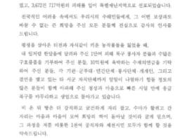 이어 이 시장은 "비 온 뒤 땅은 더 강직하고 굳건하게 자리 잡고 수마가 할퀴고 간 자리는 마음이 모여 희망의 싹이 돋아날 것이라 굳게 믿는다."며, “그 과정을 저를 비롯한 1천여 공직자와 제천 시민 모두가 함께 할 것을 약속드린다.”고 덧붙였다.