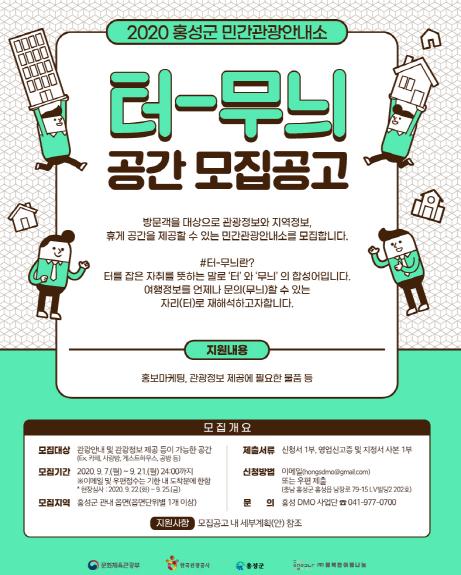 홍성군이 지역관광추진조직(DMO) 육성사업의 일환으로 홍성 읍면단위 지역 관광네트워크 구축을 위한 거점관광플랫폼 ‘터-무늬’에 참여할 공간 운영자를 모집한다고 10일 밝혔다.