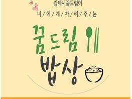 김제시학교밖청소년지원센터 꿈드림은 코로나19 장기화로 인해 혼란과 고립의 상태에 놓여진 학교 밖 청소년들의 건강한 일상 회복을 위해 센터에 등록 한 학교 밖 청소년 40명에게 16일부터 18일까지‘꿈드림 밥상’을 전달할 예정이다.