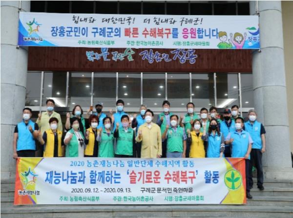 정종순 장흥군수는 “피해를 입은 구례군민들에게 깊은 위로와 무한한 응원의 마음을 전하고, 각자의 재능 나눔으로 우리지역을 넘어 이웃지역까지 살피는 새마을회원 모두에게 감사”함을 전하였다