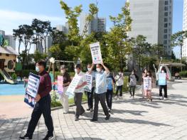 인근의 이노힐스 아파트 주민들도 ‘슬기로운 집콕 생황, 명절에서는 집에서 보내자’와 ‘추석절 고향방문 자제, 영상통화 OK, 지혜로운 명절 보내기’라고 쓴 피킷을 들고 출향인과 자녀들의 고향방문 자제를 독려했다.