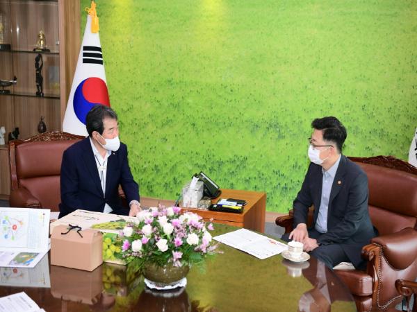 이미 중앙정부 및 경상북도를 수차례 방문하여 본 사업의 세부추진 방안에 대해 협조를 구하고 향후에 필요한 지원을 충분히 협의했던 김충섭 김천시장은 지난 9월 14일 농림축산식품부를 방문하여 김현수 농림축산식품부 장관 및 이재욱 차관과 함께 농산물종합유통타운 건립에 대한 방안을 함께 모색하고 건립에 따른 국비지원을 재차 건의하였다. 이날 김충섭 시장은 김천시의 농산물종합유통타운 건립에 대한 당위성과 필요성을 충분히 설명하며 김천을 농산물 유통의 신거점지역으로 만드는 한편, 국토중심의 김천이 대한민국 농업경제활성화에 선두가 되겠다는 의지를 밝혔다.