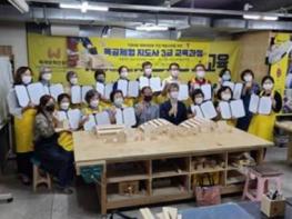 부산시 연제구(구청장 이성문)는 지난 11일 거제동 ‘나무의 선물’ 목공교육장에서 ‘목공체험지도사’ 과정 수료식을 개최했다.