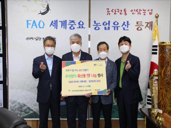 NH농협은행 금산군지부(지부장 양환성)는 지난 14일 추석 명절을 맞아 어려운 이웃을 위해 1000만 원 상당의 햄 선물 200세트를 금산군에 기탁했다.