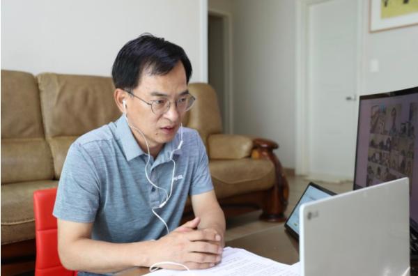 하루 1/5씩 1주일간 광산구 직원 전체가 참여하는 재택근무 첫날 집에서 업무에 들어간 김삼호 광산구청장은, 영상회의에서 코로나19 비상대책, 추석명절 특별 방역대책, 현안업무 등을 놓고 구 공무원들과 의견을 나눴다.