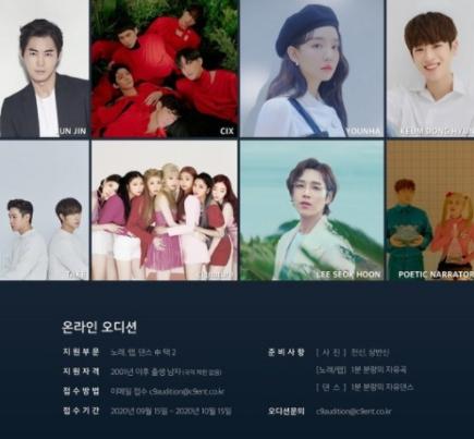 매년 개최되고 있는 이번 오디션은 올해 온라인으로 진행된다. 1분 분량의 자유곡, 자유 댄스 영상을 통해 인재를 발굴할 예정이다. 합격자는 C9엔터테인먼트의 연습생 자격으로 전문 트레이닝을 받을 기회가 주어진다.