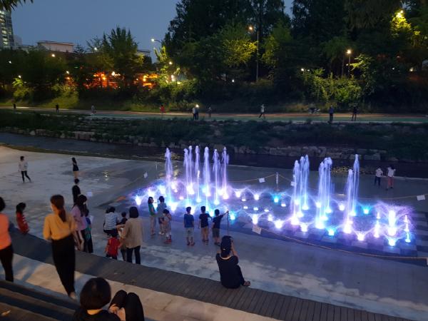 노원수학문화관 앞 음악분수는 가로 20.5m, 세로 5.5m 규모로 노즐 303개를 통해 최대 25m 높이의 물줄기를 쏘아 올린다. 신나는 음악에 맞춰 화려한 조명과 함께 역동적인 분수쇼를 선보인다. 코로나 응원 문구 등 분수의 워터스크린에 표출되는 메시지들은 관중의 탄성을 불러일으킨다. 19일(토)부터 10월 말까지 저녁 7시 하루 1번 15분간 운영한다.
