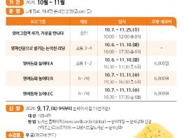 유아와 초등학생 어린이들을 대상으로 영어그림책과 영자신문으로 영어독서 능력을 향상시킬 수 있도록‘영어동화 놀이터’,‘영자신문으로 즐기는 논픽션 리딩’등 4개 프로그램을 운영하며 아이들과 가정에서 함께하는 시간이 길어진 학부모를 대상으로 자녀의 영어그림책 지도에 도움이 되고 인문교양을 쌓을 수 있는 ‘영어그림책 작가, 거장을 만나다’ 프로그램도 준비되어 있다.