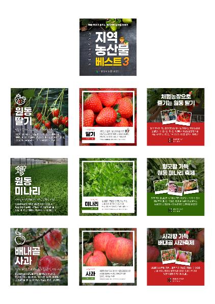 카드뉴스 주제는 원동 딸기, 미나리, 배내골 사과 등 양산시 지역에서 재배되는 우수 지역농산물 소개와 이를 활용하여 집에서 즐길 수 있는 조리법(레시피)이다.