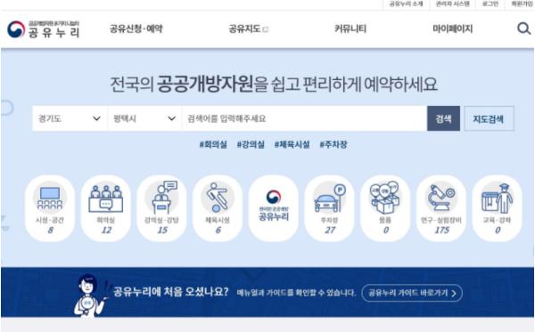 대국민 공공개방자원 공유 서비스 통합포털인 ‘공유누리’는 중앙행정기관, 지방자치단체 및 공공기관 등이 유휴 시간대 개방하는 시설, 물품 등 개방된 자원 현황을 온라인에서 쉽게 찾아 예약할 수 있도록 지난 3월부터 시작한 서비스다.?