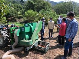 지원되는 밤 수집기는 효율성을 높이기 위하여 기존 밤 수확망 및 밤 작업로를 토대로 밤 수집기가 수확망에 떨어진 밤을 흡입호스로 밤송이를 빨아 들여 밤송이는 파쇄하고 알밤은 구분하여 배출하므로 고령화와 인건비 상승으로 인력난을 겪고 있는 밤 임가에 큰 도움이 될 것으로 기대된다.
