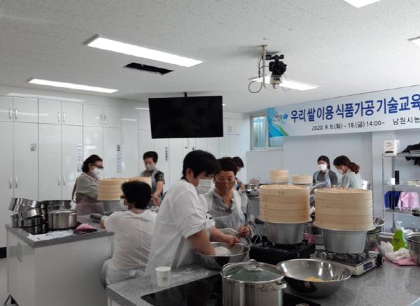 남원시농업기술센터(소장 나상우)는 우리 쌀 이용 식품가공 기술 교육을 시작했다. 9월 8일부터 18일까지 기간 중 총 8회로 한 팀당 우리 쌀을 이용한 전통주, 퓨전떡 만들기 교육을 각각 1일씩 진행한다. 국민 1인당 연간 쌀 소비량은 계속 감소하여 2019년 기준 59.2kg 이하로 떨어졌으며 이는 하루에 162g으로 공기밥 1.5그릇에 불과하다고 한다.
