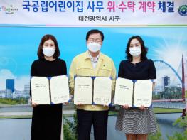 16일 서구청 3층 갑천누리실에서 또래또래어린이집, 피노키오어린이집 대표자(원장)와 국공립 전환 어린이집 건물 사용 및 사무 위·수탁 계약을 체결하고 2021년 3월부터 국공립으로 전환할 예정이다.