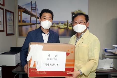 ㈜국제리프라텍?국제리번사업(대표 전영철)이 16일 평택시 이종호 부시장을 접견하여 코로나19 방역활동을 지원하기 위해 방호복 100벌, 부직포 속장갑 2,000장을 기부했다.