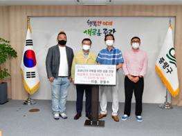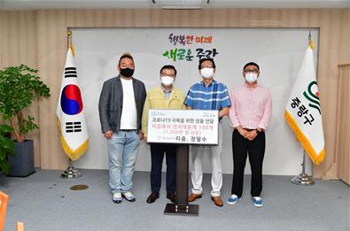 중랑구(구청장 류경기)는 16일 오전 ㈜리쥼(대표 김진현)으로부터 코로나19 방역을 위한 비접촉식 전자체온계 100개(금 1,000만 원 상당)를 기탁 받았다고 밝혔다.