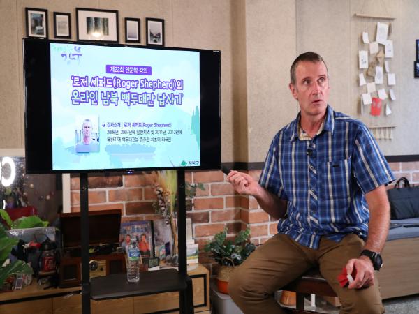 구는 지난 16일 인문학 강의 사전촬영을 끝마쳤다. 강연자로 나선 로저 셰퍼드(Roger Shepherd, 뉴질랜드)씨는 산을 오르는 답사과정과 현장체험의 생생한 뒷이야기를 들려줬다. 푸른 눈의 시선으로 바라 본 남·북한 사람들의 삶의 모습이 고스란히 전해졌다.