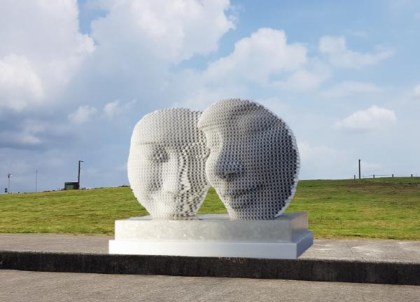 파주시는 9.19 평양공동선언 2주년에 맞춰, 남북평화의 염원과 4.27 판문점선언을 기념하기 위해 제작한 이철희 작가의 ‘We Are One(우리는 하나입니다)’ 조형물을 임진각 평화누리에 전시한다고 17일 밝혔다.