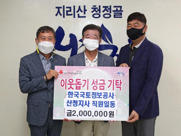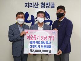 한국국토정보공사 산청지사(지사장 김택주)가 17일 산청군을 찾아 이웃돕기 성금 200만원을 기탁했다.