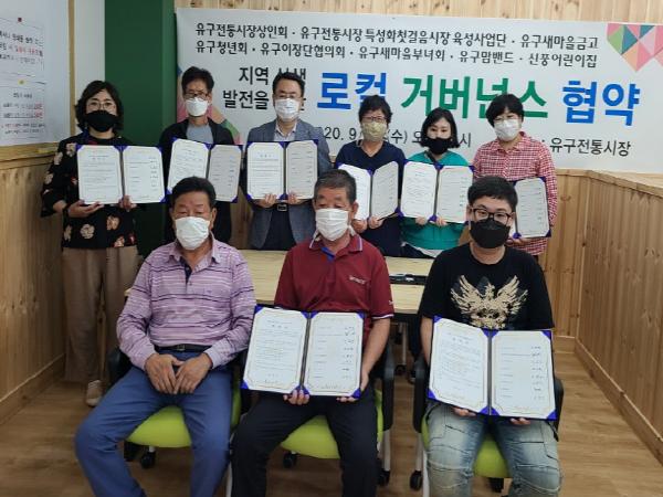 공주시에 따르면, 유구전통시장 상인회를 중심으로 첫걸음시장육성사업단, 유구새마을금고, 유구청년회, 유구이장단협의회 등 8개 기관이 모여 상생 발전을 위한 업무협약을 지난 16일 체결했다고 밝혔다.