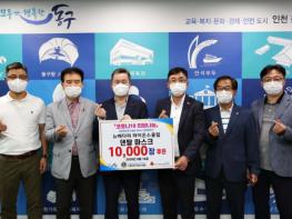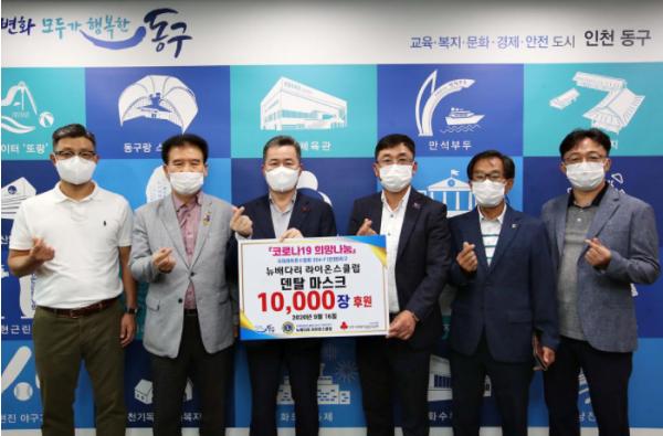 인천시 동구(구청장 허인환)는 1인천 뉴배다리 라이온스클럽(회장 정재현)에서 코로나19 극복을 위해 후원 물품으로 준비한 덴탈마스크 10,000장 전달식을 가졌다.