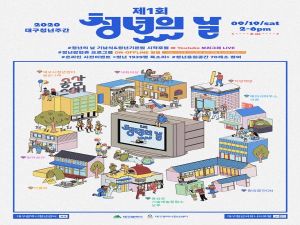 대구시는 청년기본법 시행에 따라 올해 처음 법정기념일로 지정된 청년의 날을 기념하고, 청년 문제 공감대 확산과 청년 응원을 위한 ‘2020 대구청년주간 제1회 청년의 날’ 행사를 경상감영길 일대 9개의 청년공간에서 비대면 위주로 분산해 진행한다.