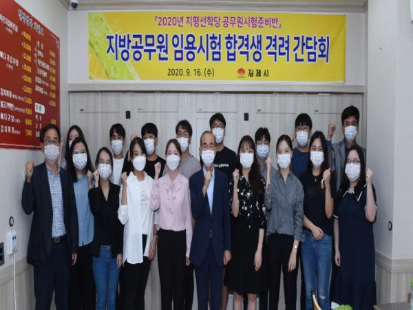 김제시(시장 박준배)는 지난 16일 올해 지방공무원 임용시험에서 최종 합격한 지평선학당 공무원시험준비반 수강생 17명을 대상으로 간담회를 가졌다고 밝혔다.