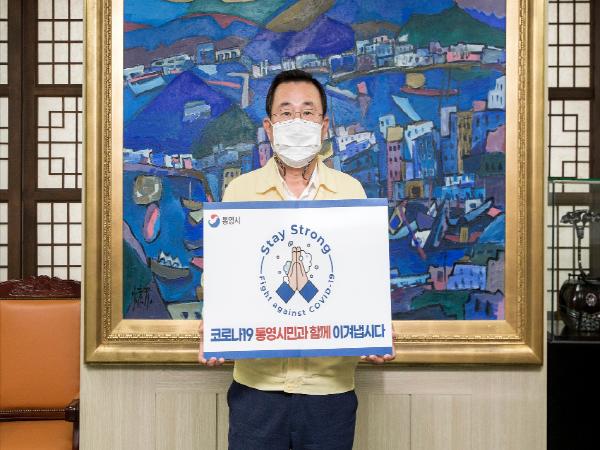 강석주 통영시장이 지난 16일 ‘스테이 스트롱 릴레이’캠페인에 동참하는 인증샷을 개인 SNS에 게시했다고 말했다.